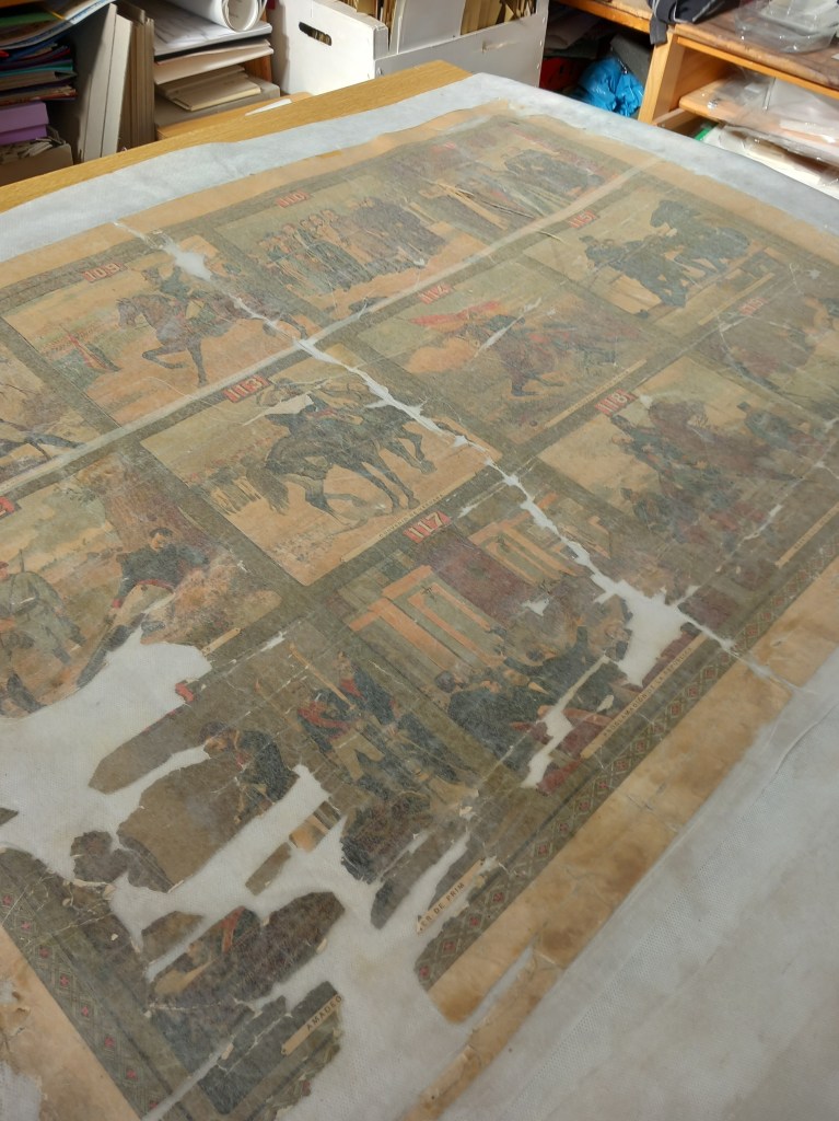 Restauración de un rollo de litografías de la Historia de España de Calleja