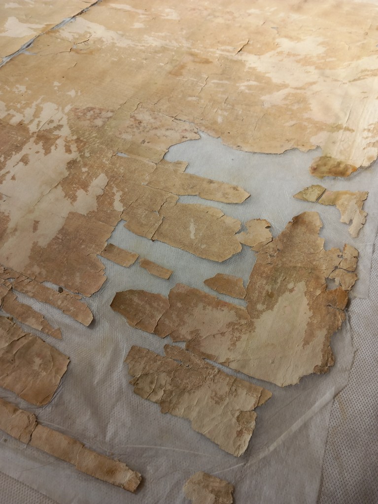 Restauración completa de 10 láminas unidas que crean un rollo de papel de cerca de 8 m de largo por 1 m de ancho.