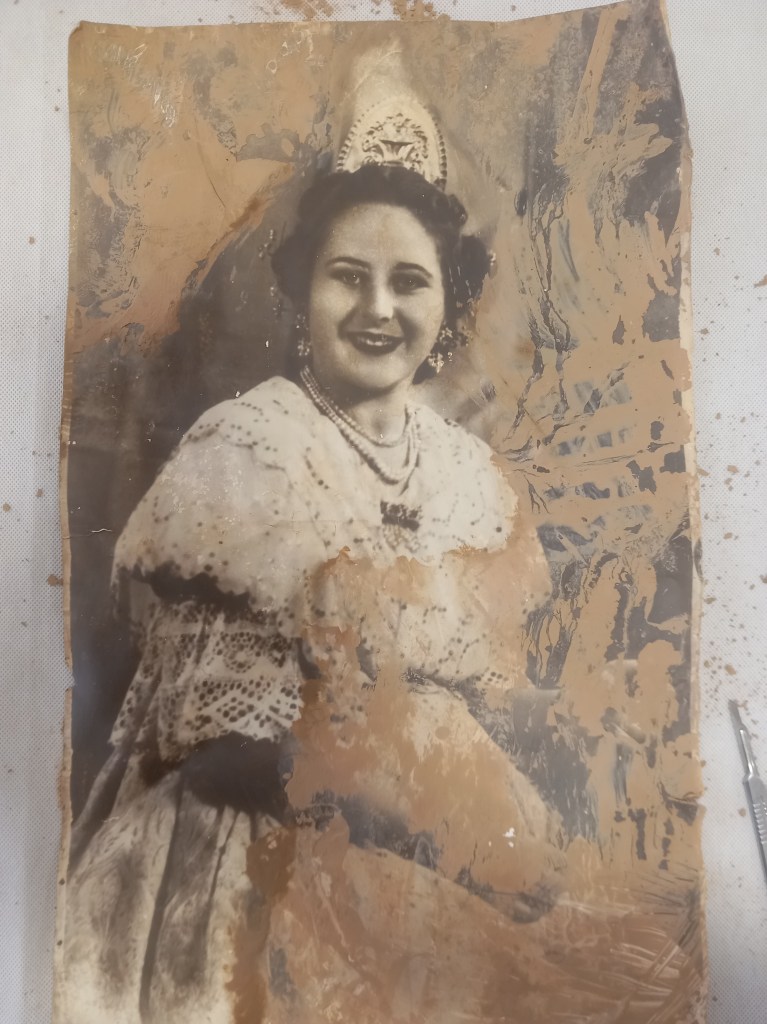 Restauración de fotografías antiguas afectadas por la DANA de Valencia de octubre de 2024.